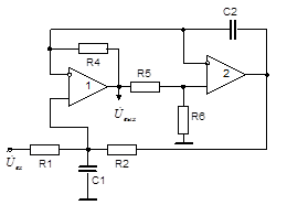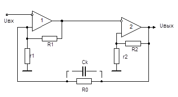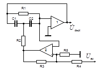 Рис. 8. Низкочувствительное звено полосового типа с симметричной RC-цепью Анализ RC-подсхемы приводит к следующим результатам: