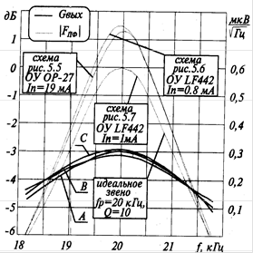 Следовательно, при реализации высокой добротности наблюдается не только большое изменение основных параметров, но и, как это видно из (30), увеличение собственного шума схемы:
