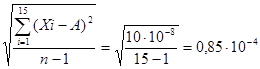 Среднеквадратическое отклонение результата наблюдения определяется по формуле (Г.1): д(А)= Неравенство 3d(А) £ (Xi – A) несправедливо для всех i от 1 до 15, можно сделать вывод, что грубых ошибок среди результатов наблюдений нет. Оценка среднеквадратического отклонения результата измерения: S(A)= Доверительные границы случайной погрешности определяем: о=t∙S(A)=2,16∙0,239∙10-4=0,516∙10-4 г Доверительные границы неисключенной систематической погрешности: