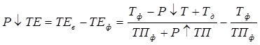 где Р↓ТЕ – величина резерва снижения трудоемкости, ТЕв и ТЕф – трудоемкость возможная и фактическая (при этом ТЕв<ТЕф), ТПф- фактический объем производства товарной продукции, Тф- связанные с ним фактические затраты рабочего времени (человеко-час), Р↓Т – предполагаемое сокращение рабочего времени за счет механизации, автоматизации производства, повышения квалификации рабочих, улучшений условий труда и т.д., Р↑ТП – предполагаемое увеличение объема производства товарной продукции за счет внедрения достижений научно-технического прогресса. Тд – дополнительные затраты рабочего времени, связанные с увеличением объема производства продукции. Экономию (перерасход) фонда заработной платы в связи с изменениями соотношений производительности труда и средней заработной платы рассчитывают по формуле: