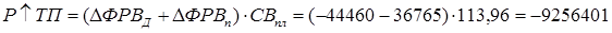 где Р↑СВ - величина резерва увеличения среднечасовой выработки, СВв и СВф- среднечасовая выработка рабочего возможная и фактическая, (при этом СВв>СВф), ТПф - фактический объем производства товарной продукции, Тф - связанные с ним фактические затраты рабочего времени (человеко-час), Р↓Т – предполагаемое сокращение рабочего времени за счет механизации, автоматизации производства, повышения квалификации рабочих, улучшений условий труда и т.д., Р↑ТП – предполагаемое увеличение объема производства товарной продукции за счет внедрения достижений научно-технического прогресса. Тд – дополнительные затраты рабочего времени, связанные с увеличением объема производства продукции. В заключении анализа трудоемкости продукции определяется резерв ее снижения по формуле: