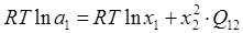 где xi и xj - мольные доли компонентов, Qij - энергия взаимообмена (смешения). В рамках модели строго регулярного раствора энергии взаимообмена являются константами. В реальных системах энергии взаимообмена (как эмпирические параметры модели) зависят от состава и температуры. Для субрегулярных растворов: