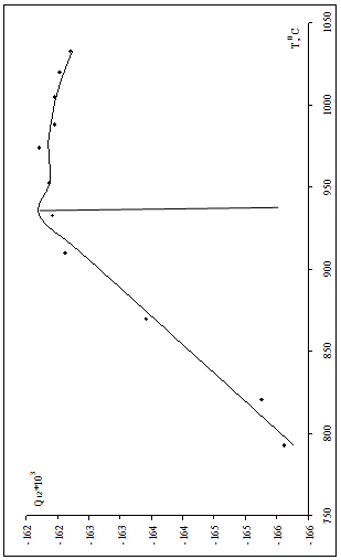 Решая систему уравнений (1.19), получаем значения энергий смешения (табл.1.4). Q12 <0, следовательно, раствор имеет отрицательные отклонения от закона идеальности. Таблица 1.4 Энергии смешения для γ-фазы