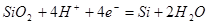 Рис.1.5 Диаграмма рН-потенциал для системы Si-H2 O при 25 0 С, 1 атм. (воздух) и Линии "а" и "b" на диаграмме ограничивают область термодинамической устойчивости воды. В области 1 кремний находится в виде оксида кремния SiO2 . Основные химические и электрохимические равновесия приведены в таблице 1.6. Таблица 1.6. Основные химические и электрохимические равновесия в системе Si-H2 O при 25 0 С, 1 атм. (воздух) и ai =1