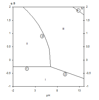 Для того чтобы построить диаграмму рН-потенциал по уравнению (1.28), выбирают фиксированные значения Наклонные линии ( Вместо него применяют уравнение: