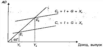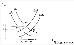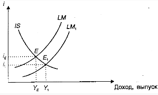 , при котором рынки товаров и денег достигают равновесия. Новая точка равновесия Е1