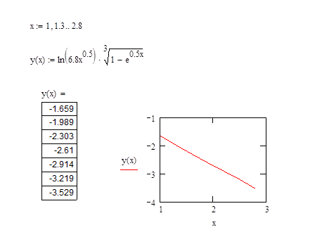 Задание 1.1 Вычислить значение функции y(x) на промежутке [1;2.8] с шагом h=0.3.