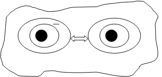 С При создании композита трудно достичь равномерного распределения частиц по объему связующего. Известно, что низкоразмерные частицы обладают собственным нескомпенсированным зарядом с большим временем релаксации. Тогда вокруг заряженной частицы модификатора возникает ансамбль (кластер) поляризованных частиц среды. Эти кластеры могут привести в движение большое количество нейтральных молекул жидкости, поскольку относительная концентрация зарядов в жидкости мала (10-6 ч 10 -1 ). Эти молекулы могут поляризоваться, находясь в электрическом поле частицы и вступать во взаимодействие с зарядом, образуя структуру «заряд-слой» диполей. Внешняя оболочка этой структуры создает вокруг себя новый слой диполей и т.д. до некоторого равновесного формирования – «зарядового кластера». Расчеты показывают, что размер модифицированной частицы по толщине составляет -400 нм. Тогда для всего объема полимера радиус частицы модификатора может быть равным 25–30 нм. Эти размеры могут быть получены известными технологическими способами. На рис. показана предполагаемая топологическая модель межфазных взаимодействий наполнителя с полимерной матрицей.