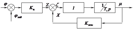 Рис. 2.1.2. Функциональная схема П-регулятора ЧЭ – чувствительный элемент; УУ – усилительное устройство; ИМ – исполнитель-ный механизм; ЖОС – жесткая обратная связь Тогда структурная схема примет вид: