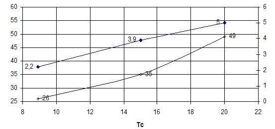 Изначально было принято значение Тс= 8,902, как показывает исследование при этом: - статическая ошибка - время переходного процесса составило - динамическая ошибка - колебательность Далее принимаем значение Тс= 15, исследование показывает: - статическая ошибка - время переходного процесса составило - динамическая ошибка - колебательность При значении Тс= 20, получим следующие показатели: - статическая ошибка - время переходного процесса составило - динамическая ошибка - колебательность По рассчитанным показателям построим диаграммы качества и представим их на рис. 2.5.3 и рис. 2.5.4.