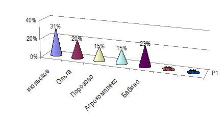 1. ОАО "Июльское" 31%, 2. ООО "Ольга" (20%), 3. ООО "Порозово" (15%), 4. ОАО "Агрокомплекс" (11%), 5. ООО "Бабино" (23%) Рис.2. Рыночная доля предприятия ОАО "Агрокомплекс"Сегментирование рынка имеет конечной целью выбор целевых сегментов, которые в наибольшей степени соответствуют возможностям предприятия ОАО "Агрокомплекс" и особенностям развития рынка. Успех реализации продукции во многом определяется наличием хорошо организованных, контролируемых каналов сбыта и средств коммуникации с потребителями, либо, как минимум, возможностями их развития. Отсутствие перспектив в этой области (захват конкурентами сети реализации продукции, отсутствие эффективных средство объемов продаж. Необоснованно большие или малые объемы производства и реализации могут быть причиной сокращения рыночной доли. Приблизительная емкость рынка получена по результатам телефонного опроса. Телефонный опрос - быстрый метод с высоким уровнем качества получаемой информации. Данный метод является достаточно не дорогим, ответы носят короткий характер, однако проблема здесь состоит в том, что может быть отказ от ответов. Карта телефонного опроса представлена в таблице 4, приложение 2. Опрошено 20 абонентов телефонной сети. 4. Разработка предложений по улучшению положения исследуемого товара4.1 Анализ потребностиПроцесс согласования запросов потребителей и возможностей организации протекает в определенной внешней среде, в которой осуществляется маркетинговая деятельность. С точки зрения объекта изучения маркетинговые исследования представляют собой комплексное исследование. Так, очень сложно отделить друг от друга такие направления исследований, как рынок, потребитель, конкурент. Рынок немыслим без конкурентной борьбы, потребителя формируют свое поведение в определенной рыночной среде. Внешняя среда маркетинга характеризует факторы и силы, внешние по отношению к маркетингу, которые влияют на возможности организации устанавливать и поддерживать успешное сотрудничество с потребителями. Эти факторы и силы не подвластны прямому управлению со стороны организации. Молоко является основным товаром - т.е. товар, покупаемый потребителем регулярно. Результаты анализа потребности на молоко производителя ОАО "Агрокомплекс" представлены в таблице 5. Таблица 5 Результаты анализа