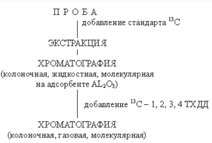 Рис.5. Загальна схема аналізу проби ПХДД/Ф 7. Методи детоксикації Як було зазначено вище специфіка токсичності діоксинів полягає в тому, що серйозну небезпеку являють лише заміщені галогеном в положенні 2,3,7,8 похідні ПХДД/ПХДФ. Всі інші, з врахуванням концентрацій, в яких вони можуть знаходитись в оточуючому середовищі, не являють серйозної небезпеки, тобто для детоксикації достатньо видалити один із чотирьох латеральних атомів галогену. Звичним методом знищення особливо шкідливих речовин є їх руйнація під дією високих температур (спалювання чи піроліз). Але у випадку хлорованих органічних речовин високотемпературні процеси є основними джерелами забруднення оточуючого середовища діоксинами. Сьогодні запропоновано ряд низькотемпературних матодів деструкції. Всі вони відомі достатньо давно, але, з різних причин, поки що жоден з них не знайшов практичного використання, тому нижче наведені лише короткі описи. Табл. 9. Нетермічні методи детоксикації ПХДД/ПХДФ
