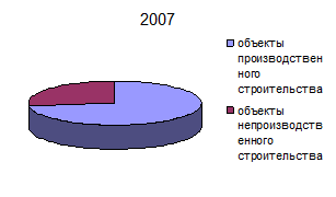 Рис. 1. Структура выполненных подрядных работ по видам (%) Структура выполненных подрядных работ по видам на данные периоды существенно не изменилась, то есть в 2009 и 2010 годах на объекты производственного строительства приходилось 70,3% и 70,5% из общего объёма выполненных подрядных работ. А на объекты непроизводственного строительства за те же годы соответственно 29,7% и 29,5%. Объём выполненных подрядных работ по объектам производственного строительства в 2010 году по сравнению с 2009 годом этот показатель увеличился на 0,2%. Соответственно объём выполненных подрядных работ по объектам непроизводственного строительства в 2010 году по сравнению с 2009 годом снизился на 0,2%.