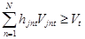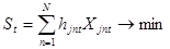 где минимум ищется среди всех возможных вариантов финансирования по каждому проекту jnt Î(1nt , 2nt ,…Jnt ). Решение задачи (1) - совокупность всех индексов hjnt , должно удовлетворять следующим ограничениям: