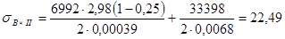 Тоді напруга у небезпечному перерізі штовхального брусу: