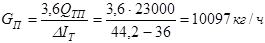 Затем на поле I-d диаграммы наносим линию dП = const, по которой находим положение точек П и О, характеризующих состояние воздуха на выходе из кондиционера и из камеры орошения. 2.2 Расчет количества тепла для подогревателей 1-ого и 2-ого подогрева Выбираем максимальный воздухообмен с запасом 5% = 10675*5%=11200 кг/ч,