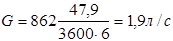 Вычисляют массовую скорость в живом сечении Vp, кг/(м2 ∙с);