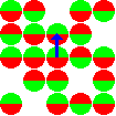 Поля, изменяемые во времени с частотой Лармора, вызывают переходы между спиновыми состояниями и ,следовательно, изменяют MZ . Эта диаграмма показывает поле для зеленого атома водорода в молекуле воды во время его вращения во внешнем поле Bo и магнитном поле синего атома водорода.