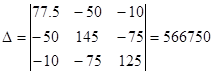 I22 (R6 +R5 +R3 )-I11 R3 -I33 R5 =-E1 I33 (R2 +R1 +R5 )-I22 R5 -I11 R1 -Iк1 R2 =E2 77.5I11 -50I22 -10I33 =125
