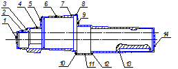 Таким образом, проанализировав все имеющиеся коэффициенты, можно говорить, что деталь «Вал» является технологичной по всем рассчитанным коэффициентам. 5. Выбор исходной заготовки5.1 Определение вида и метода получения исходной заготовкиПравильный выбор исходной заготовки непосредственно влияет на построение технологического процесса изготовления детали, способствует снижению материалоёмкости, затрат на изготовление, а следовательно, снижение себестоимости изготовления детали. Эксплуатационные параметры детали «Вал» и вид материала позволяют изготавливать заготовку из проката по ГОСТ 2590-74 и щтамповкой получаемую на кривошипном горячештамповочный пресс и закрепленный открытый штамп с предварительным нагревом заготовки в газопламенной печи. Материал, из которого изготовлена деталь – 40Х13 ГОСТ 5632-72, данный материал имеет хорошие штамповочные свойства, обладает достаточной прочностью и относительно низкой стоимостью. Сравним два метода получения заготовки – горячекатаный прокат по ГОСТ 2590-74 и штамповкой получаемую на кривошипном горячештамповочный пресс и закрепленный открытый штамп с предварительным нагревом заготовки в газопламенной печи. Оба рассматриваемых вида могут быть применены в среднесерийном производстве, поэтому необходимо выбрать наиболее рациональный вид заготовки методом технико-экономического сравнения. Для этого нужно определить размеры и массу указанных выше заготовок. 5.2 Определение общих припусков на обработку и размеров заготовкиОпределение вида и метода получения заготовки На рисунке 1.4 а обозначим поверхности для штамповочной заготовки, на которые назначим припуски, поверхности вращения 2,4,6,8,11,13 и торцы 1,3,5,7,9,10,12,14. На рисунке 1.4 б обозначены поверхности для горячекатаного проката поверхность 1, торцы 2,3.