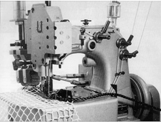 Рис. 5. Машина для укрепления краёв сетей оборудование швейный производство техника Второй подход – создание техники, выполняющей автоматически законченный цикл. Например, соединения парашютных строп машиной РЕК-Е 2008Н фирмы «MitsubishiElectric» или выполнения прямых закрепок машиной PLK-E1010 той же фирмы (рис. 6), или круговых закрепок на мебельных подушках полуавтоматом 3500-1 немецкой фирмы «КМЕ». В отмеченных случаях роль оператора сводится только к позиционированию заготовок на рабочем месте и включению полуавтомата.