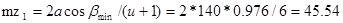 u = 110/22=5 cos b = 0,5 m z 1 ( u + 1)/а=0.5*2*22*(5+1)/140=0,942, приемлемо.