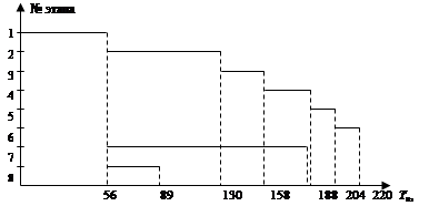 Первая строка в таблице соответствует номеру этапа процесса разработки изделия: первые шесть этапов берутся из табл. 1 (п.1), 7 этап – это продолжительность проектирования и изготовления технологической оснастки (п.2.2.,а), а 8 этап – продолжительность проектирования технологических процессов (п.2.2.,б). Причём, этапы проектирования и изготовления технологической оснастки и процессов можно проводить параллельно с остальными шестью этапами, начиная с этапа разработки технического проекта. Вторая строка таблицы (продолжительность этапов) рассчитывается в п.2.1. по формуле (7) (первые шесть этапов) и п.2.2. (7 и 8 этапы). Третья строка таблицы – количество исполнителей берётся из этих же пунктов. На ленточном графике по оси X откладывается время (дни) выполнения этапов, по оси Y – номер этапа. Горизонтальные отрезки, которые наносятся на график параллельно, отражают продолжительность циклов каждой стадии, этапа или отдельной работы.