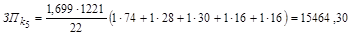 гдеτ–тарифная ставка 1-го разряда; k–коэффициент соответствующего разряда; рдн –количество рабочих дней в месяц, рдн = 22 дня. Для упрощения расчета зарплаты будем пользоваться следующей формулой: