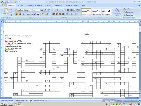 Рисунок 1. Кроссворд в программе MicrosoftWord