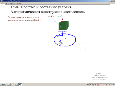 Рисунок 7. Видеоурок по теме «Простые и составные условия» в программе MacromediaFlash