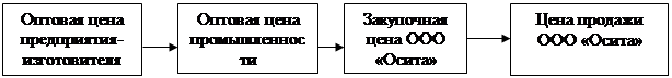 Рис. 2.3. Принцип целевой направленности цен ООО «Осита» Принцип непрерывности процесса ценообразования проявляется в следующем. Во-первых, в своем движении продукция проходит ряд этапов, на каждом из которых она имеет свою цену. Во-вторых, в действующие цены постоянно вносятся изменения и дополнения в связи со спросом, вкусами и предпочтениями покупателей. Товары, продаваемые фирмой ООО «Осита», проходят несколько этапов ценообразования, которые показаны в виде схемы.