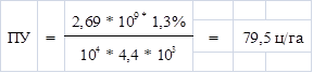 Коэффициент использования посевами ФАР (К) равен 1,3 %, а калорийность кг сухой биомассы урожая озимой ржи "Вятка" (С) на зерно составляет 4400 ккал или 4,4*103ккал. Тогда с помощью формулы подсчитаем, что имеющиеся ресурсы ФАР позволят получить урожай:
