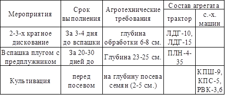 Таблица 6 Система предпосевной обработки почвы под озимую рожь