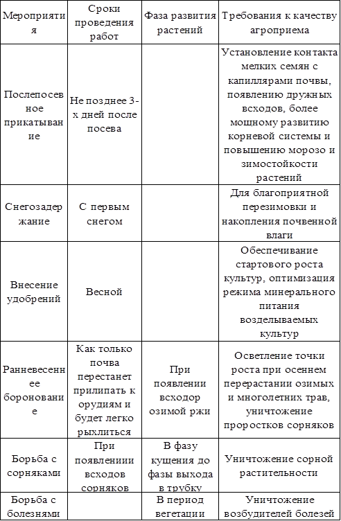 6. Агротехническая часть технологической карты возделывания культуры Агротехническая часть технологической карты возделывания озимой ржи "Вятка".