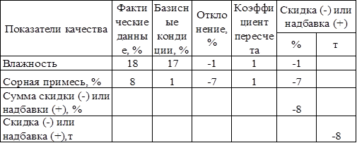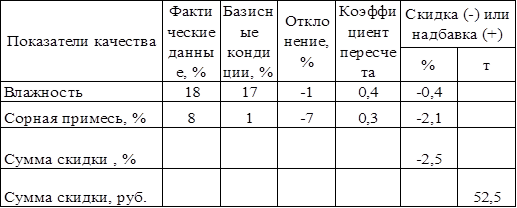 Таблица 14 Расчет окончательной стоимости сданного зерна