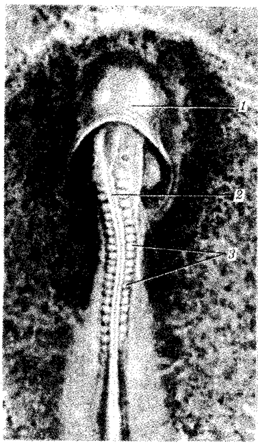 Мал. 2 Курячий зародок близько 40 ч інкубації:1-головна складка амніона, 2-нервова трубка, 3 - соміти Список літератури1. Грин Н., Стаут У., Тейлор Д. Біологія / Н. Грин, У. Стаут, Д. Тейлор, під ред. Р. Сопера. - М.: Світ, 2007. - Т. 1. - 368 с. 2. Грин Н., Стаут У., Тейлор Д. Біологія / Н. Грин, У. Стаут, Д. Тейлор, під ред. Р. Сопера. - М.: Світ, 2009. - Т. 2. - 325 с. 3. М.А. Андрейчин, В.С. Копча Епідеміологія Терн. "Укр.медкнига"-2000р. стор. 349-356. 4. MED/96217734. Jacobsen H, Hanggi M, Ott M, Duncan IB, Owen S, Andreoni M, Vella S, Mous J. In vivo resistance to a human immunodeficiency virus type 1 proteinase inhibitor: mutations, kinetics, and frequencies. J Infect Dis. 1996 Jun;173(6):1379-87. |