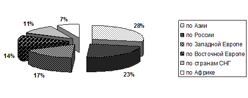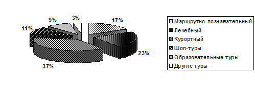 Наиболее распространенными видами туризма среди потребителей являются: 1) курортный туризм (37%), 2) лечебный (23%), 3) маршрутно-познавательный (17%). Наибольшим спросом выездного туризма являются следующие туры: тур по Азии, по России, по Западной Европе, по Восточной Европе, тур по странам СНГ, и по Африке. Одним из популярных направлений горожан является Китай. Данные спроса потребителей отражены в рисунке 3.2. Рисунок 3.2 Анализ спроса потребителей на выездные туры