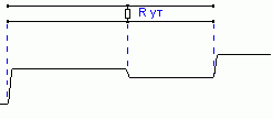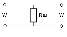 Рис 2.8 Схема повреждения с продольным сопротивлением Выражение для коэффициента отражения при наличии включения продольного сопротивления будет иметь вид: Котр= (W1 – W) / (W1 + W) = 1 / (1+2*W/Rп), (2.6) где: Rп – продольное сопротивление, W1 – волновое сопротивление линии в месте включения продольного повреждения, определяемое выражением: W1 = Rп + W (2.7) В случае обрыва жилы (Rп = бесконечности) получаем коэффициент отражения: Котр = 1. Это означает, что сигнал отражается полностью без изменения полярности. При нулевом значении продольного сопротивления (Rп= 0) имеем: Котр = 0. Сигнал не отражается вообще. При изменении Rп от бесконечности до 0 отраженный сигнал уменьшается по амплитуде от максимального значения до нулевого, без изменения полярности (см. рисунок).