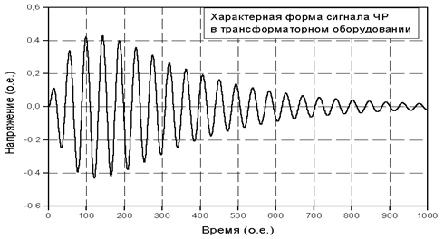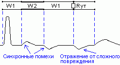Рис 2.15 Пример рефлектограммы кабельной линии с синхронными помехами Синхронные помехи можно существенно уменьшить посредством сравнения или дифференциального анализа. При сравнении накладывают рефлектограммы двух линий (неповрежденной и поврежденной), проложенных по одной трассе.