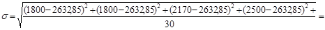 3. Вычислим простое среднее квадратическое отклонение по следующей формуле: