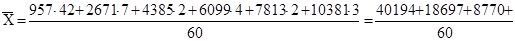 При расчете средней по интервальному вариационному ряду для выполнения необходимых вычислений от интервалов переходят к их серединам. Рассмотрим таблицу 3.2. Для определения среднего товарооборота найдем середины интервалов. Они будут следующими: 957 2671 4385 6099 7813 10381 Используя среднюю арифметическую взвешенную, определим средний розничный товарооборот для магазинов республики Калмыкия: