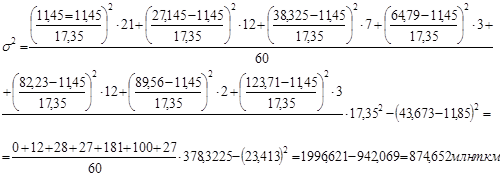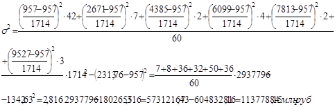 Рассчитаем дисперсию по формулам (5.7), (5.8), (5.9) для таблицы 3.4:
