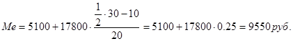 Графическое построение моды для данного ряда представлено на рисунке 6.4. Рассчитаем медиану для таблицы 3.6. Медианным будет интервал с границами (5100-22900). Медиана: