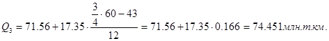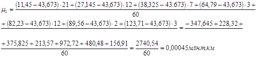 Рассмотрим таблицу 3.4. Для определения среднего грузооборота транспорта общего пользования найдем середины интервалов. Они будут следующими: 11,45 27,145 38,325 64,79 82,23 89,56 123,71 Используя среднюю арифметическую взвешенную, определим средний грузооборот транспорта общего пользования в республике Калмыкия: