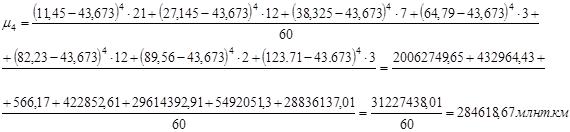 Величина эксцесса отрицательная, следовательно, данное распределение плосковершинное. Для таблицы 3.6 рассчитаем эксцесс по формуле (7.6):