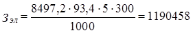 В соответствии с формулой (5.9) рассчитаны затраты на электроэнергию: