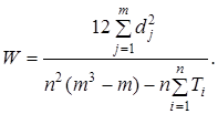 Тогда коэффициент конкордации, вычисленный по совокупности всех направлений, составляет