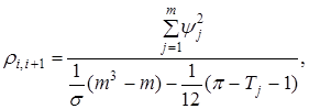 Коэффициент парной ранговой корреляции может принимать значения от +1 до –1. Значение ρ=1 соответствует полной согласованности мнений двух экспертов. Значение ρ=–1 показывает, что мнение одного эксперта противоположно мнению другого. Для определения уровня значимости значений коэффициентов W и ρi , i +1 можно использовать критерий χ2 . Для этого вычисляется величина