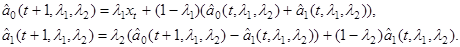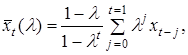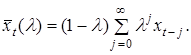 Коэффициент сглаживания λ можно интерпретировать также как коэффициент дисконтирования, характеризующий меру обесценения наблюдения за единицу времени. Для рядов с «бесконечным прошлым» формула (3.20) сводится к виду