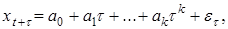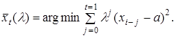 где a0 − неизвестный параметр, не зависящий от времени, а ετ − случайный остаток со средним значением, равным нулю, и конечной дисперсией. Как известно, экспоненциально взвешенная скользящая средняя ряда xτ